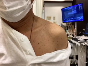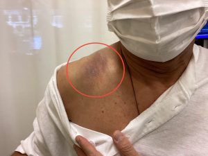 当院で検査し鎖骨骨折の疑いがあった為、固定を行い提携している整形外科にそのまま行っていただきました。レントゲンで骨折が確認出来た為、整形外科で処置を行なっています。この方の場合、早期運動復帰希望があった為、手術を行うな事になりました。