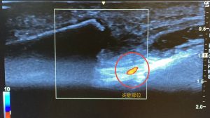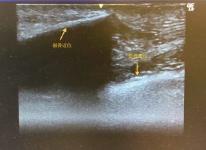 右鎖骨部骨折部エコー画像(炎症反応あり)