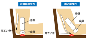 座っている時に骨盤が後傾(丸まっている)している状態だと本来圧迫されない尾骨に全体重がのてしまいます。